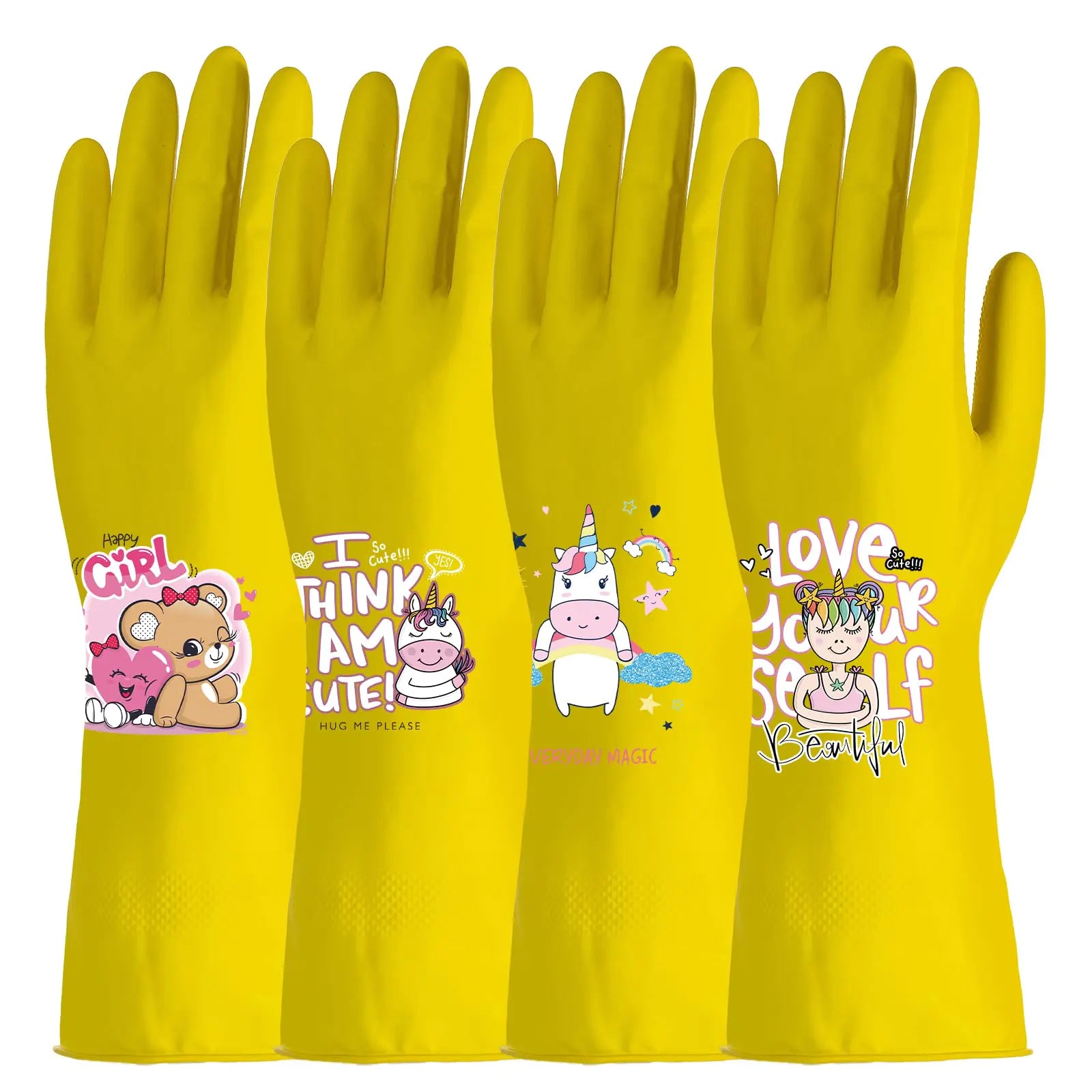 ROYIPAI 4 Pairs Kitchen Rubber Cleaning Supplies Cute Patterns Gloves Household Cleaning Gloves For Dishwashing (so cute serial 1 Small)