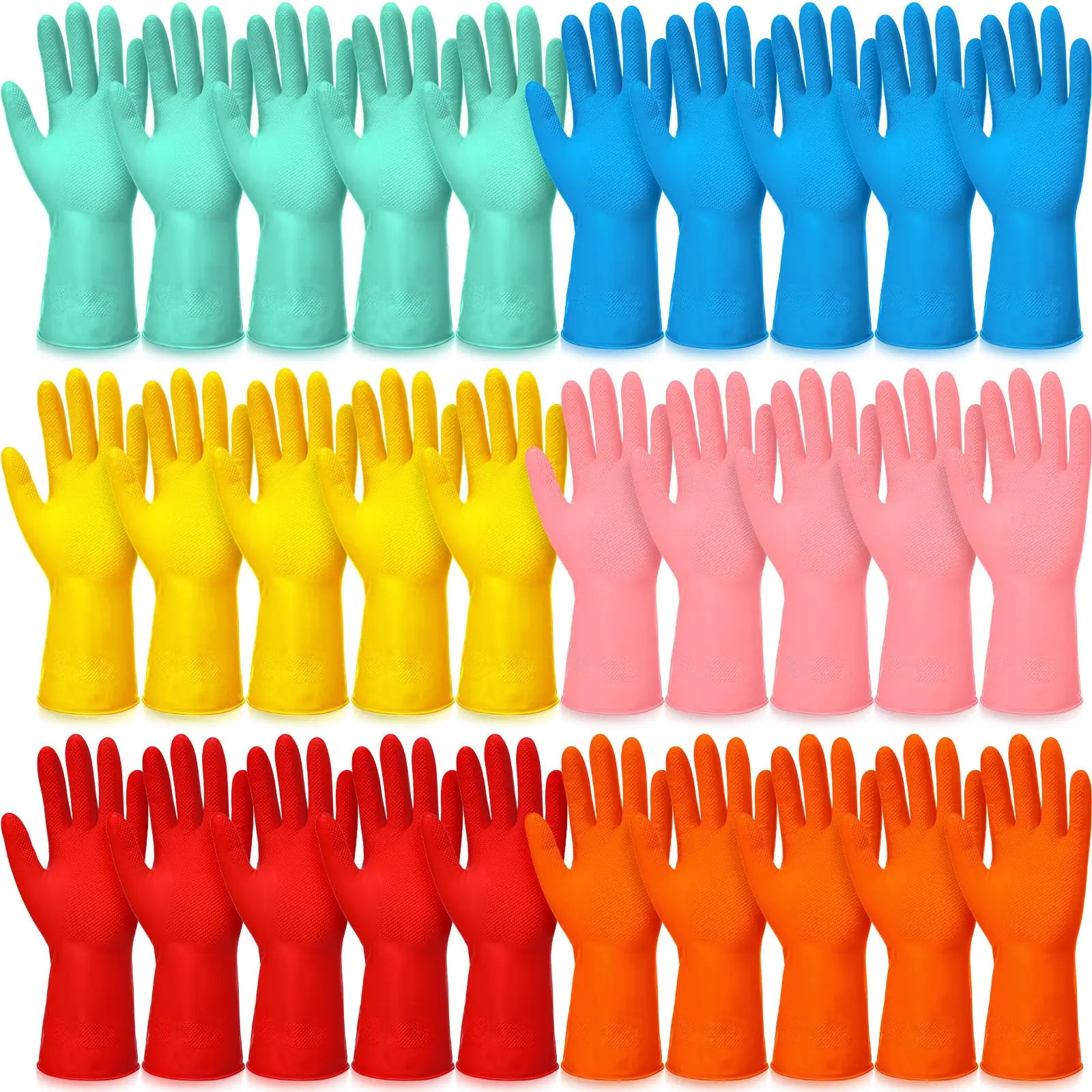 [Nice Combination: the package includes 30 pairs of kitchen rubber gloves in 6 different colors each color has 5 pairs sufficient quantity and a good combination to satisfy your daily use and replacements Suitable Using Size: each rubber dishwashing gloves measures approx. 31 cm/ 12.2 inches in total length complete wrapping of body parts from fingers to forearms they are suitable for most people whose palm size is between 10 x 11 cm/ 3.94 x 4.33 inches please confirm the size you need before purchase Long Serving Time: these rubber gloves for cleaning are made of quality rubber and latex materials reliable and safe for people to use not easy to tear break or fade no unpleasant smell so they can serve you for a long time Protection of Hands: these reusable household gloves can effectively keep water or oil stains from penetrating and keep your hands from coming into direct contact with these stains playing a protective and isolating role in cleaning Wide Range of Applications: these dishes cleaning gloves are suitable for dishwashing cleaning laundry car washing daily chores gardening painting pet care and more which are widely applicable they are good helpers for people to do house cleaning]
